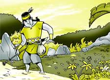 Pada suatu hari, seperti biasa Sangi pergi berburu. Namun hari itu, ia sangat kesal. Dari pagi hingga sore, tidak seekor binatang buruan pun yang diperolehnya. Karena hari mulai senja, ia berniat pulang.